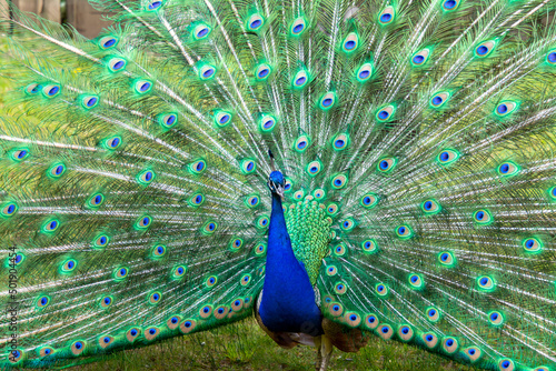 © infra2808, Obraz premium Prächtiger Pfau mit aufgestellten Federn