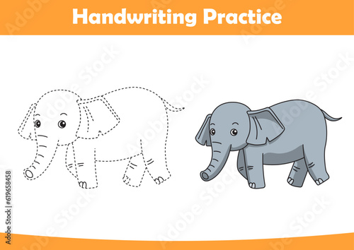 © Abdulhalimahmad, Naklejka premium Practice handwriting. Tracing elephant lines and coloring for children