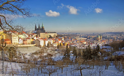 © Simone, Fototapeta premium Prag, Blick vom Petrin auf die Burg, Moldau und Altstadt