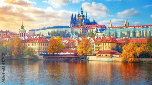 © Togrul, Naklejka premium Prague Castle above Vltava River, autumn