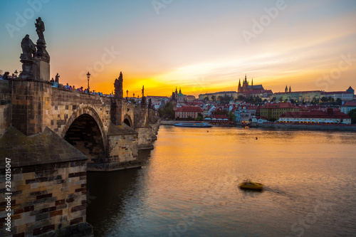 Fototapeta premium Prague castle and Charles bridge at sunset, Czech republic