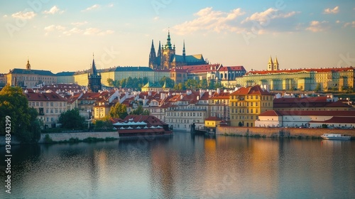 © muhammad, Fototapeta premium Prague Castle and Lesser Town at Sunset: A Panoramic View
