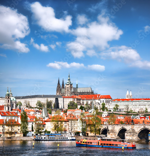 Obraz premium Prague Castle with famous Charles Bridge in Czech Republic