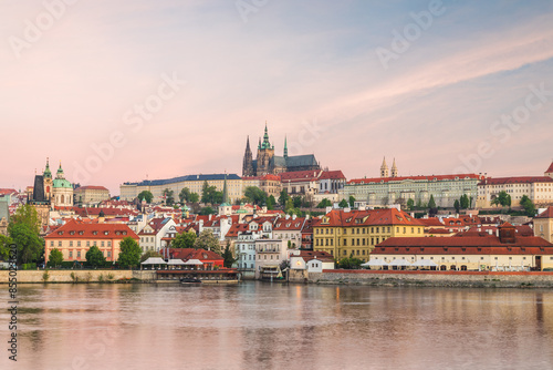 Fototapeta premium Prague Castle with Vltava river at sunrise, Prague, Czech Republic, Europe.