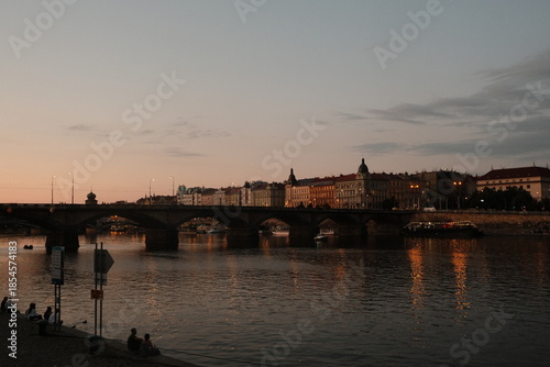 © Viktor, Obraz premium Prague Charles Bridge Evening Cityscape Reflections