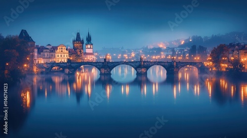 © Sirirat, Fototapeta premium prague charles bridge night photography scenic vltava river view