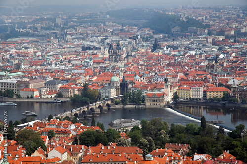 © Gina Sanders, Obraz premium Prague City View from the lookout tower Petrin