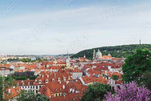 Fototapeta premium Prague cityscape in spring. Top view of old city center.