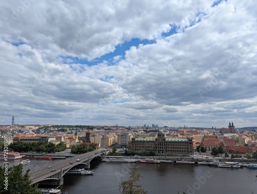 © Shane, Fototapeta premium Prague cityscape with Vltava River, bridge, and historic skyline