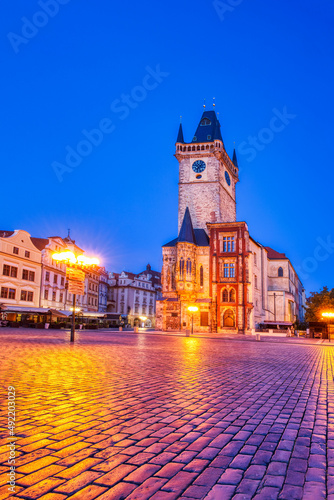 © romanslavik.com, Naklejka premium Prague Clock Tower on Old Town Square at Dusk