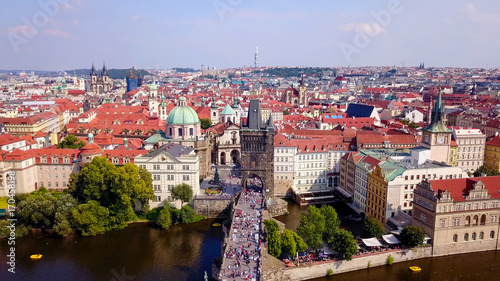 Fototapeta premium Prague, Czech Republic - Beautiful summer’s day over the city, including Charles Bridge and Prague one municipal district