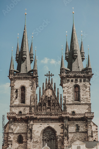 © roman38russ, Fototapeta premium PRAGUE, CZECH REPUBLIC - July 28, 2013: Church of our lady of tyn on blue sky background with clouds.