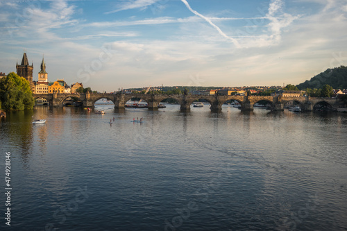 Fototapeta premium Prague, Czech Republic, June 2019 - beautiful sunset view of Prague by the Vltava River
