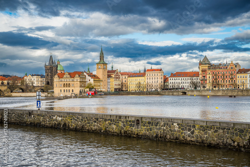 © marketanovakova, Obraz premium Prague, Czech republic - March 31, 2023. View over river to Smetanovo nabrezi