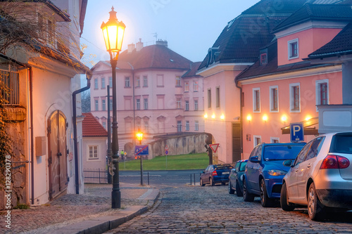 © Dmitry Vereshchagin, Fototapeta premium Prague, Czechia - November, 21, 2016: cars on a parking in the center of Prague, Czechia