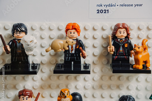 Obraz premium Prague, Czechia - September 20, 2025: LEGO Harry Potter minifigures of Ron...