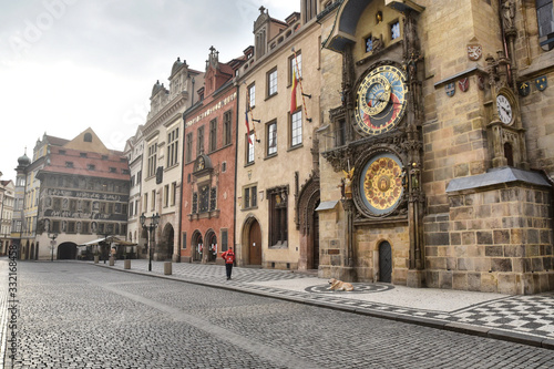 © Luk, Naklejka premium Prague during quarantine caused by Corona virus, empty square inf front of the astronomical clock