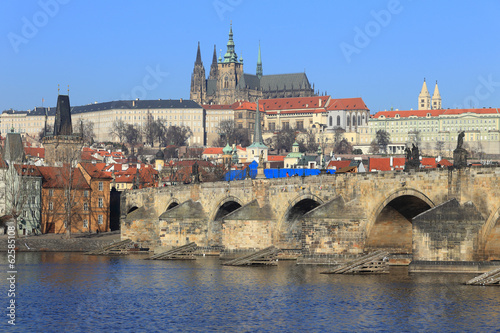 Fototapeta premium Prague gothic Castle and Charles Bridge with its Statues