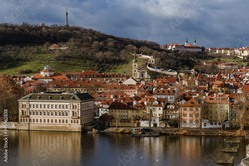 Naklejka premium Prague Houses and Hills View from Riverbank