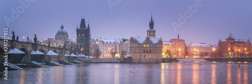 Fototapeta premium Prague in Winter, View of the Charles Bridge at Night