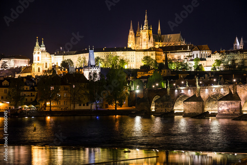 © Travel Faery, Fototapeta premium Prague night view, Pragsky grad (Prague Castle) and Charles brid