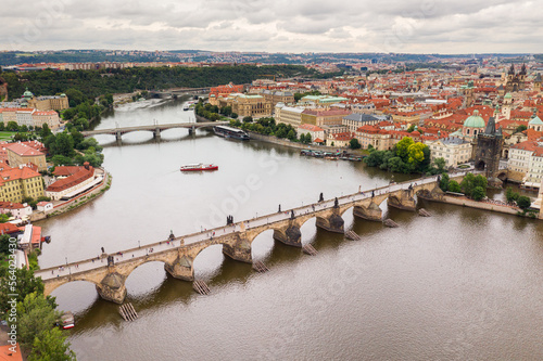 © Mindaugas Dulinskas, Obraz premium Prague Old Town in Czech Republic with Famous Sightseeing Places in Background. Charles Bridge Iconic 14th century Structure with View, Vltava river and Prague Cityscape. Must Visit City