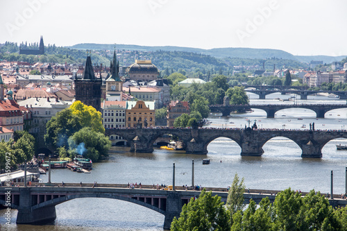 Obraz premium Prague panorama charles bridge river from mountain skyview