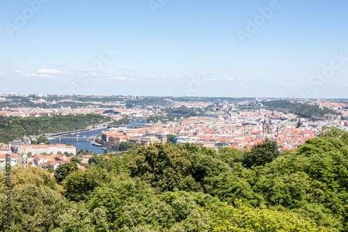 Naklejka premium Prague panorama charles bridge river from mountain skyview