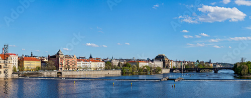 © Dmitry Rukhlenko, Obraz premium Prague Stare Mesto embankment panorama from Charles bridge