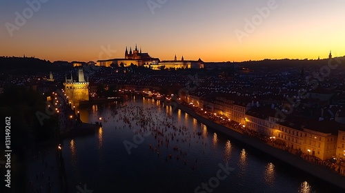 Naklejka premium Prague Sunset River Boats