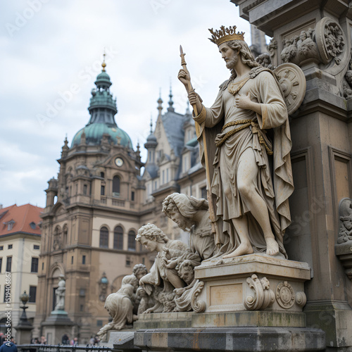 © Hector, Fototapeta premium Prague - The baroque statue of st. Lutgardis and Christ on the Charles Bridge by M.B. Braun (1710).