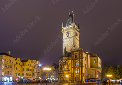 Fototapeta premium Prague town hall on spring night - Cheque