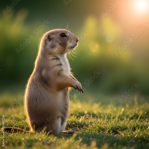 © Tonoy S, Fototapeta premium Prairie dog standing alert in golden light on a summer evening