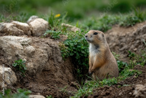 Fototapeta premium Prairie Dog Vigil: A Serene Wildlife Portrait