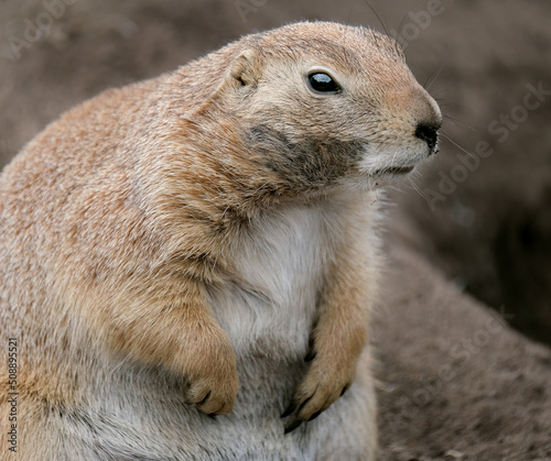 Naklejka premium Prairie dogs are herbivorous burrowing mammals native to the grasslands of North America. Within the genus are five species: black-tailed, white-tailed, Gunnison's, Utah, and Mexican prairie dogs.