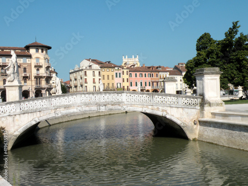 © aliberti, Fototapeta premium Prato della Valle is a large elliptical square with statues, fountains and colorful houses. It is the largest square in Padua and the largest in Europe.