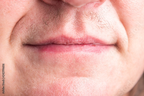 © Natallia, Fototapeta premium Prawdziwe kobiece wąsy. Oznaki męskich hormonów na kobiecej twarzy.