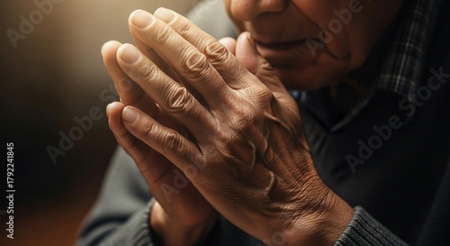 Fototapeta premium Prayer Hand Aged by Time Capturing Humility and Spiritual Endurance of an Old...