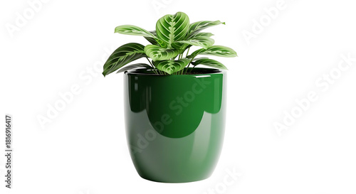 © Belajar, Obraz premium Prayer plant in a green pot on a white background.