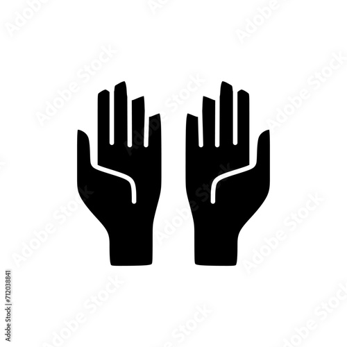 © Fasih Abdullah, Obraz premium Praying hand gesture in black fill icon. Trendy style Ramadan design element resources for many purposes.