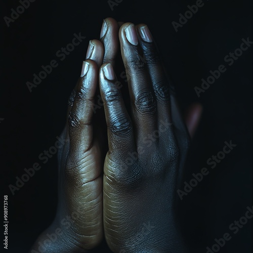 © gen_pick, Fototapeta premium Praying Hands Embrace Hope in Solemn Darkness