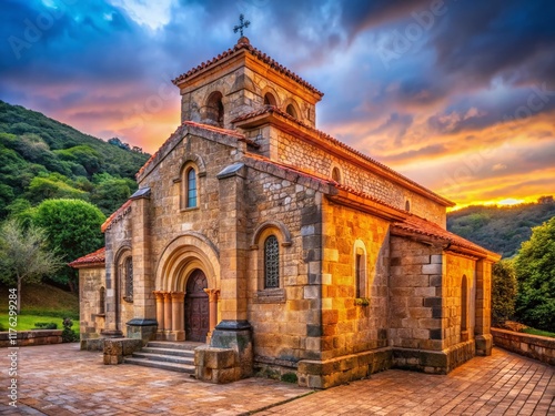 Obraz premium Pre-Romanesque Architecture: Stunning Portrait of San Miguel de Lillo...