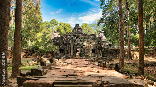Fototapeta premium Preah Khan Temple site among the ancient ruins of Angkor Wat Hindu temple complex in Cambodia