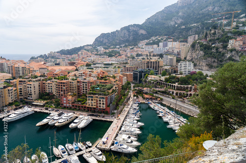 © Hladchenko Viktor, Naklejka premium Precious apartments and harbor with luxury yachts in the bay,Monte Carlo,Monaco,Europe