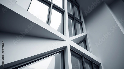 © Svitlana, Fototapeta premium Precise architectural color photography of a window showcasing sharp lines, detailed structures, and wide angles.jpg
