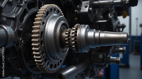 Fototapeta premium Precisely engineered metal gears interlock seamlessly, a testament to...