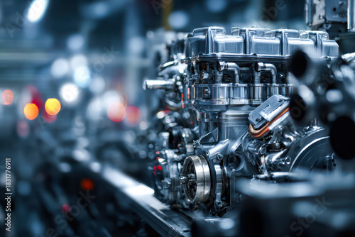Fototapeta premium Precision-engineered automotive engine in a high-tech manufacturing facility