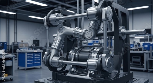 Fototapeta premium Precision engineered mechanical assembly showcase of innovative machine prototype design