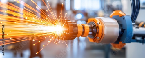 © Ketobox, Obraz premium Precision Engineering Sparks from Industrial Machine Tool Operation