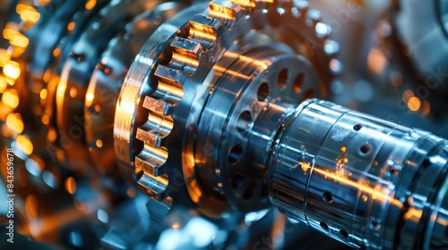 Obraz premium Precision in Motion: Close-up of Advanced Industrial Machinery Parts in...